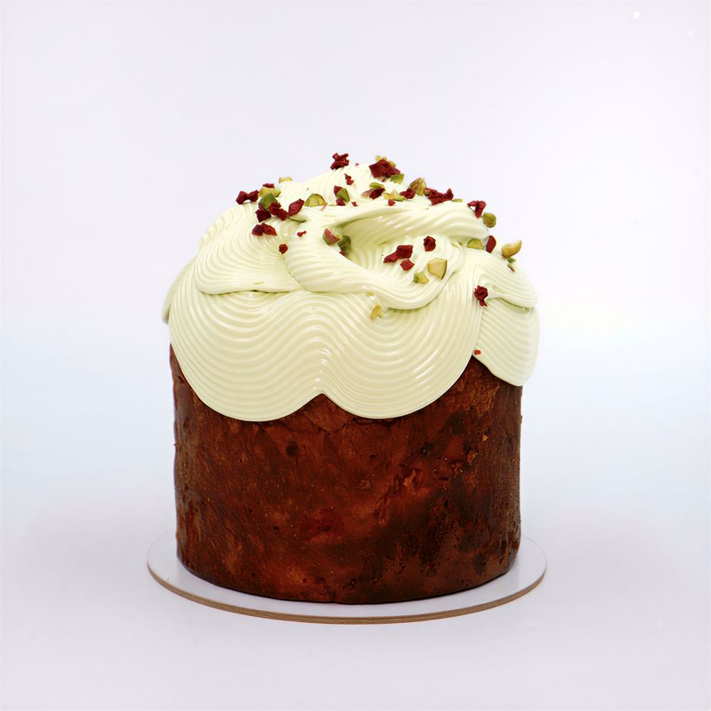 Мягкий кулич с насыщенной начинкой из заварного фисташкового крема и ягод сублимированной вишни. Вкус сочетает в себе благородный ореховый оттенок и приятную ягодную кислинку.